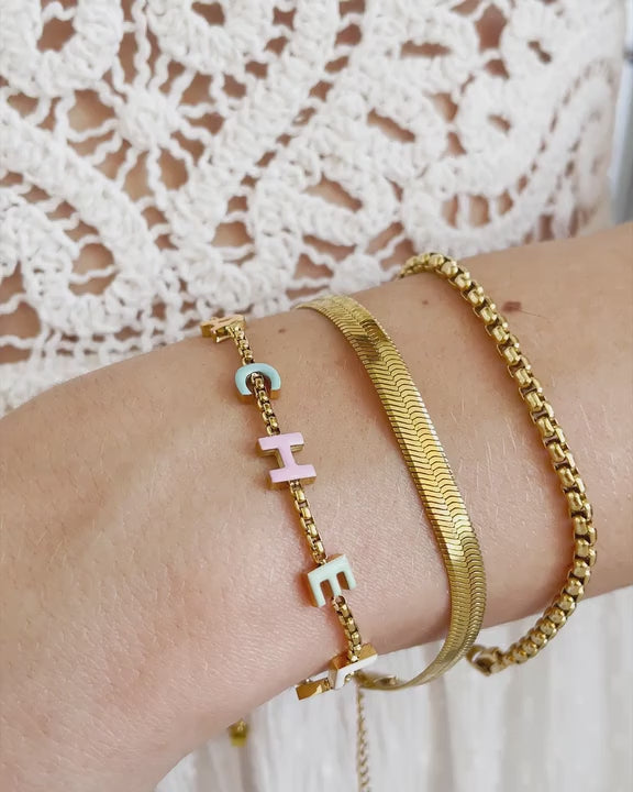 Help others discover Custom Enamel Name Bracelet (Gold)
