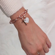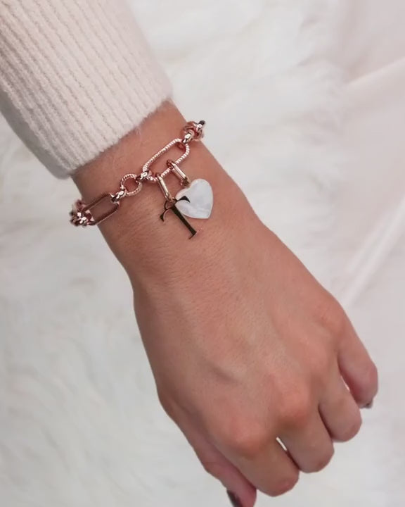 Letter & Birthstone Figaro Chain Bracelet (Rose Gold)