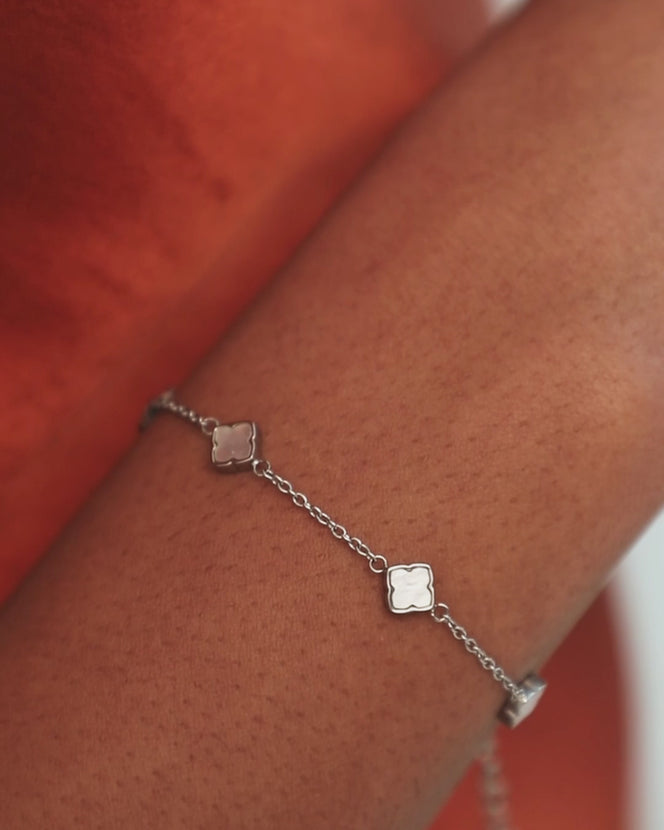 Mini Multi Pearl Clover Bracelet (Silver)