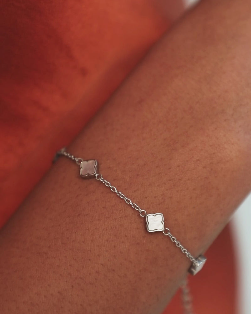 Mini Pearl Clover Necklace & Bracelet Set (Silver)