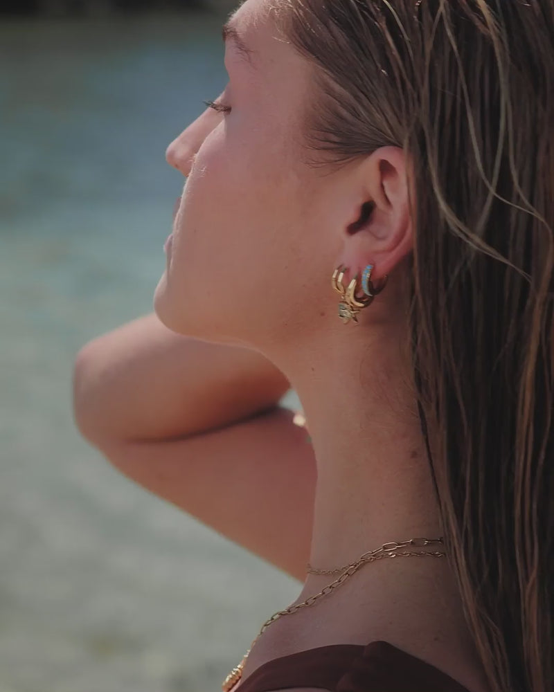 Help others discover Molten Amazonite Stone Huggie Earrings (Gold)