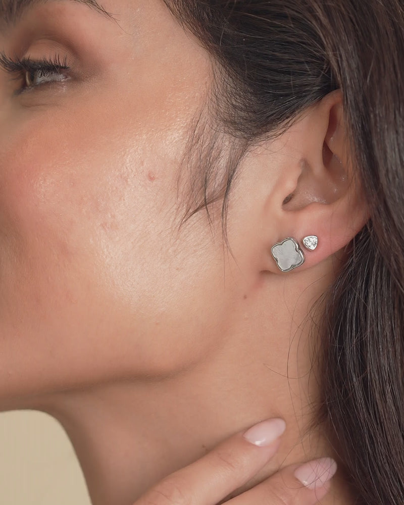 Help others discover Pearl Clover Stud Earrings (Silver)