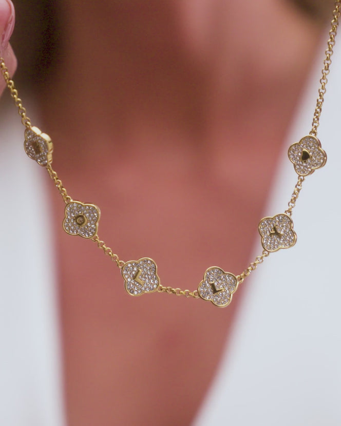 Shimmer Pavé Clover Necklace (Gold)