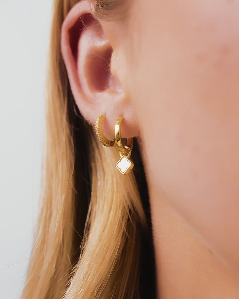 Help others discover Fine Mini Pearl Clover & Crystal Huggie Earring Set (Gold)