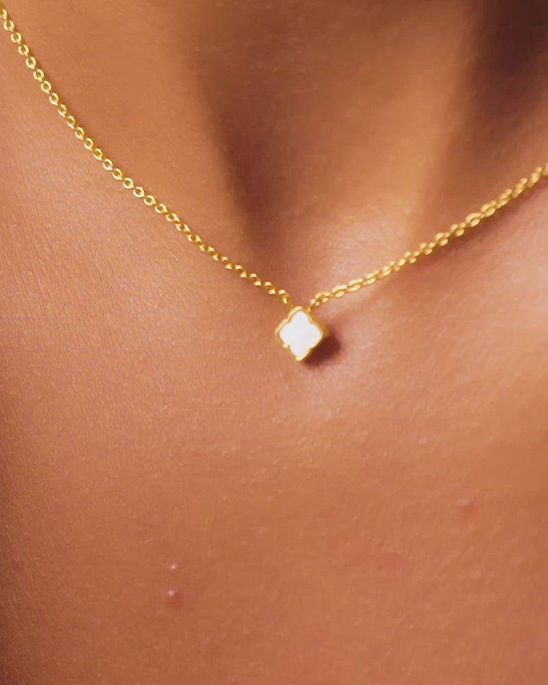 Fine Mini Pearl Clover Necklace (Gold)